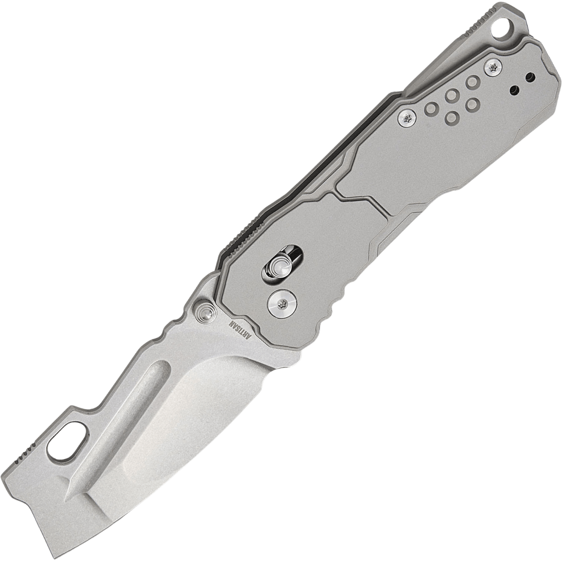 Das ArtisanCutlery Butcherling Klappmesser ist eine kühne Neuinterpretation des klassischen Metzger-Messers, das verkleinert, verstärkt und in die Zukunft katapultiert wurde. Inspiriert von traditionellen Hackmessern, aber mit einem Sci-Fi-Twist entworfen, verfügt es über ein aggressives Klingenprofil mit einem geneigten Hohlschliff, einem parallelen Schliff und einem hohen Hohlschliff nahe der Spitze für präzises Schneiden. Seine kompakte Form bietet überraschende Vielseitigkeit: Ein niedriger Flachschliff bewältigt schwere Aufgaben, die Spitze gleitet mühelos durch Kartons, und der Hohlschliff nahe dem Griff eignet sich für Detailarbeiten, sogar zum Schälen von Gemüse, wenn nötig. Trotz seines wilden Aussehens ist das Butcherling ein friedliches EDC-Taschenmesser, das für die täglichen Herausforderungen gebaut ist. Und wenn die Arbeit erledigt ist? Das ikonische Loch in der Klinge ist nicht nur zur Zierde; es ist eine Hommage an seine Wurzeln und bereit, aufgehängt zu werden, um für das nächste Mal aufzuladen.