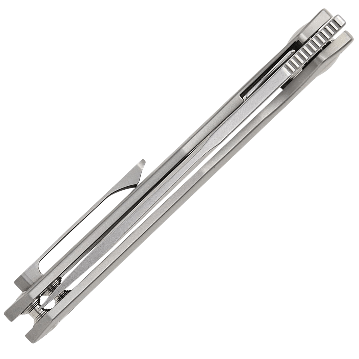 Das Keras Klappmesser von ArtisanCutlery wurde von Mallery Designs aus hochwertigen Materialien entworfen, die sein schlichtes Profil aufwerten. Die Drop-Point-Klinge besteht aus S35VN Edelstahl und wurde stonewashed, um dem täglichen Verschleiß zu widerstehen. Der Messerrücken ist mit Jimping versehen, um zusätzlichen Halt zu bieten, und ein kleiner Swedge verleiht diesem Taschenmesser zusätzlichen Reiz. Das Messer kann entweder über die jimped Rampe oder mit einem Flick in der Daumenöffnung geöffnet werden. Der Griff besteht aus robustem Titan und verfügt über einen eingelassenen Liner Lock-Mechanismus, der dem Griff ein glattes und einheitliches Erscheinungsbild verleiht. Das Keras ist mit einem umkehrbaren Titan-Taschenclip ausgestattet, der unauffällig ist und das Messer gleichzeitig dünn, aber dennoch substanzvoll wirken lässt.