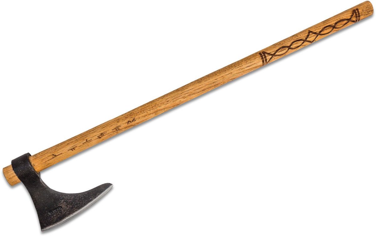 Kampfäxte werden in der westlichen Volksvorstellung vor allem mit den Wikingern in Verbindung gebracht. In ihrer Blütezeit, die vom frühen 8. bis zum späten 11. Jahrhundert reichte, wurden sie von skandinavischen Fuß- und Seefahrern als Waffe eingesetzt. Sie stellten mehrere Typen her, darunter spezialisierte Wurfäxte und "bärtige" Äxte oder "Skeggox" - so benannt wegen ihrer hinteren unteren Klingenkante, die die Kraft erhöhte und dazu verwendet werden konnte, die Kante des gegnerischen Schildes zu erfassen und ihn hochzuziehen oder herunterzuziehen, so dass der Schildträger für einen nachfolgenden Schlag verwundbar war. Die Äxte der Wikinger konnten je nach Länge des Holzstiels mit einer oder zwei Händen geführt werden. Wie zum Beispiel die prächtige Condor Valhalla Streitaxt, die Sie auch hier finden können.