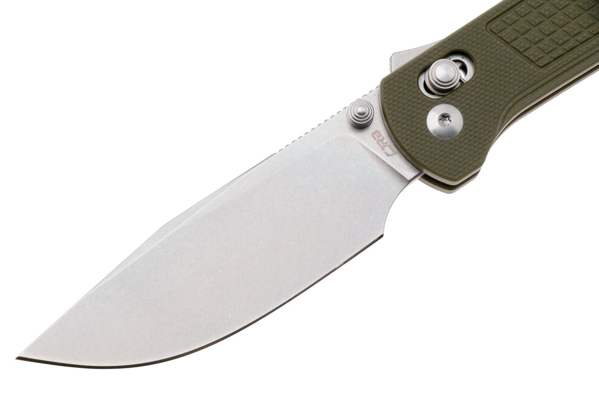 Das CJRB Bolt ist ein kompaktes Klappmesser mit einer eleganten Klinge, die für schwere Schneidaufgaben ausgelegt ist. Die Klinge ist ein Drop Point mit einer durchdringenden Spitze und einem großen Bauch, was sie ideal für eine Vielzahl von Schneidarbeiten macht. Die 3,25" Klinge hat eine stonewashed Oberfläche, die Abnutzungsspuren gut verbirgt. Die gefrästen G10 Griffschalen verfügen über ein schönes Schachbrettmuster mit leicht ausgeprägten Rillen, die in jeder Situation einen außergewöhnlichen Halt bieten. Das neue und verbesserte Recoil-Lock V2 präsentiert sich als Crossbar-Lock, kombiniert mit dem Demko Shark Lock. Einfach den am Messerrücken montierten Hebel nach unten ziehen, um die Verriegelung zu lösen, oder eine der beiden Seiten der Crossbar-Sektion nach unten schieben. Für ein elegantes Taschenmesser, das immer zuverlässig arbeitet, schauen Sie sich noch heute das CJRB Bolt an!