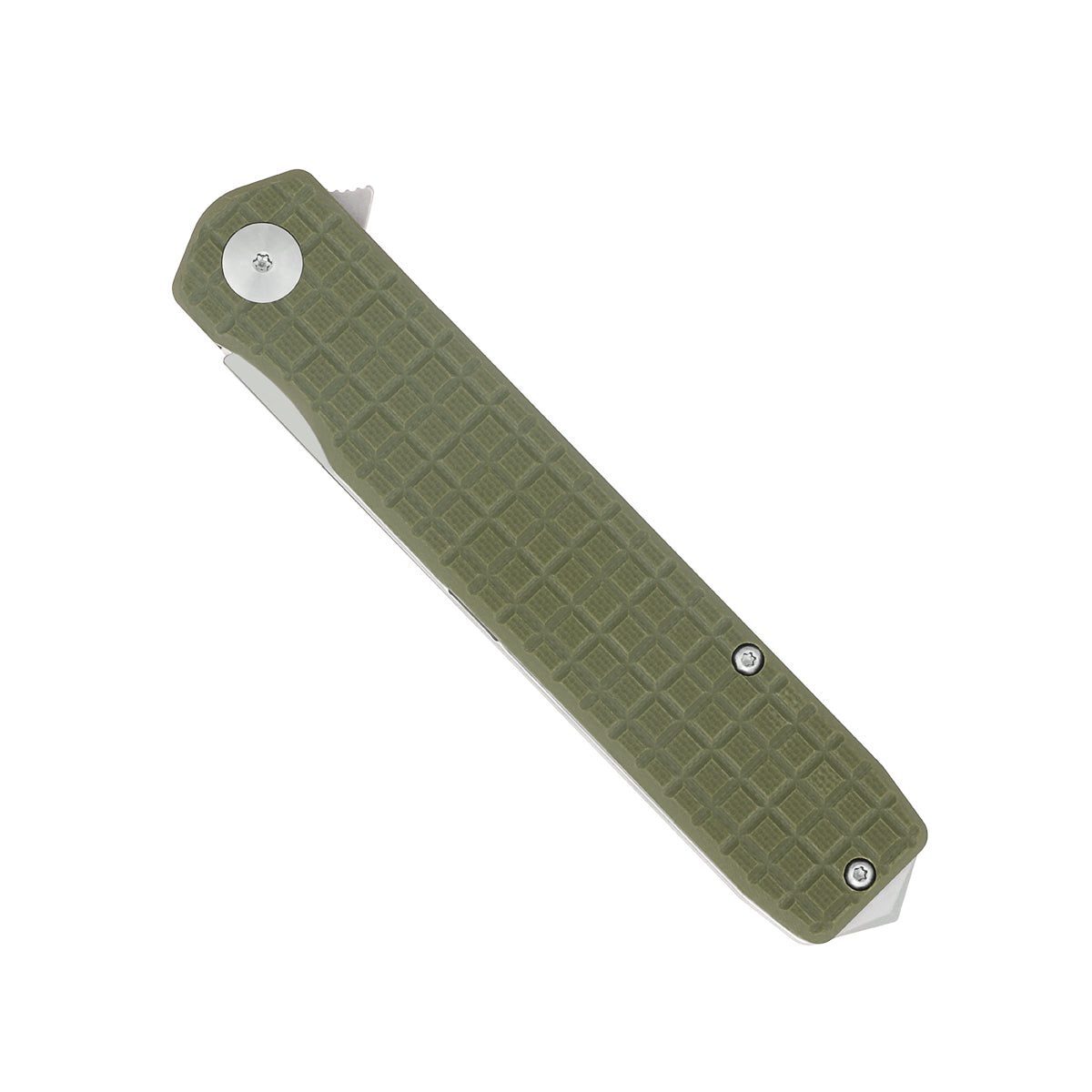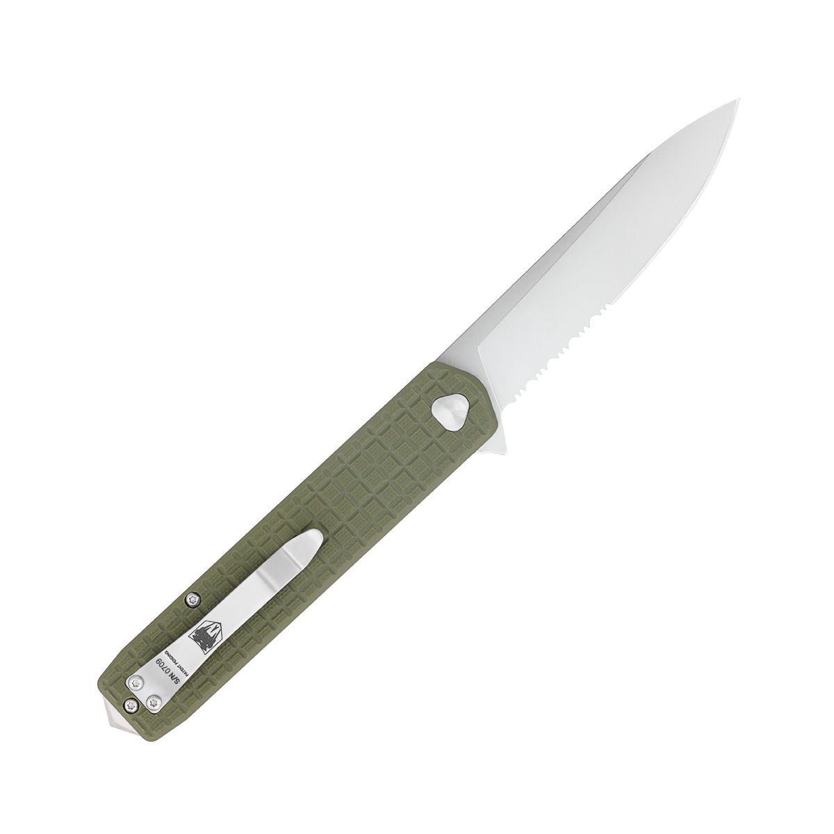 Als robustes Taschenmesser erbt das patentierte Medium Cayden die bewährte DNA von CobraTec. Mit ausgewählten Materialien, einem intuitiven Bedienkonzept und hochwertiger Verarbeitung greift das manuelle Klappmesser die Eigenschaften auf, die bereits die berühmten Cobratec OTF Automatikmesser auszeichnen. Das Medium Cayden ist ein solider Performer, erprobt, vielseitig und immer mit dem richtigen Biss. Jedes Teil wurde CNC-gefräst und bietet eine präzise Passform. Der strukturierte grüne G10-Griff sorgt für ein hervorragendes Gefühl, während der Glasbrecher, der tip-up (r) Taschenclip und der Liner Lock das Ausstattungspaket abrunden. Die kugelgelagerte, teils gezahnte D2 Drop-Point-Klinge mit fein abgestimmtem stonewash Finish und leichtgängigem flipper-Öffnung bietet maßgeschneiderte Verarbeitung im gewohnten Stil.