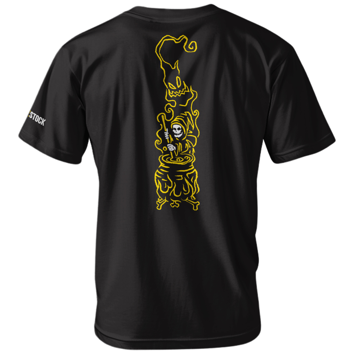 Wir präsentieren das exklusive KNFS T-Shirt, das dasselbe Motiv wie die ikonische limitierte Edition des Kizer Drop Bear Grim Reaper zeigt – das Skelett und seinen höllischen Kessel direkt auf deinem Rücken. Über allem wacht eine dunkle Gestalt, die aus aufsteigendem Rauch geformt ist.