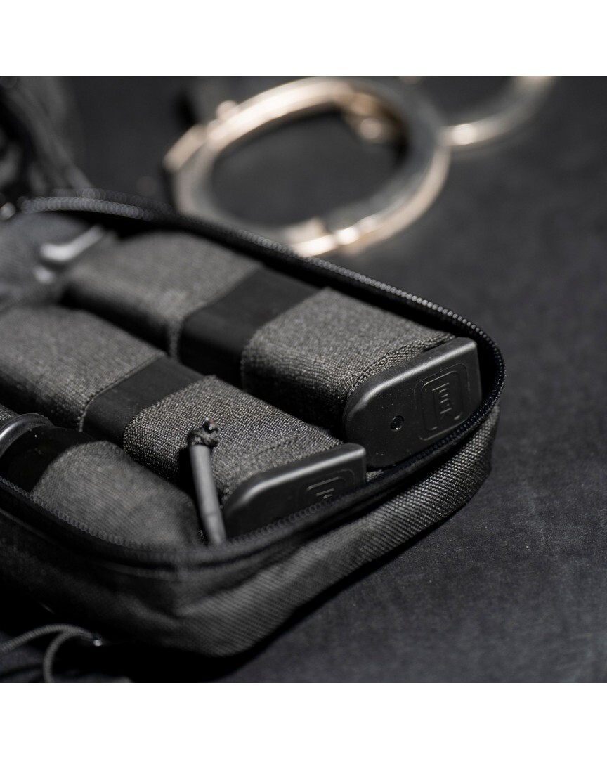 Nemea Holstertasche, eine unauffällige Bauchtasche mit ausreichend Platz für größere halbautomatische Pistolen und elastischen Trennwänden für zwei Magazintaschen.