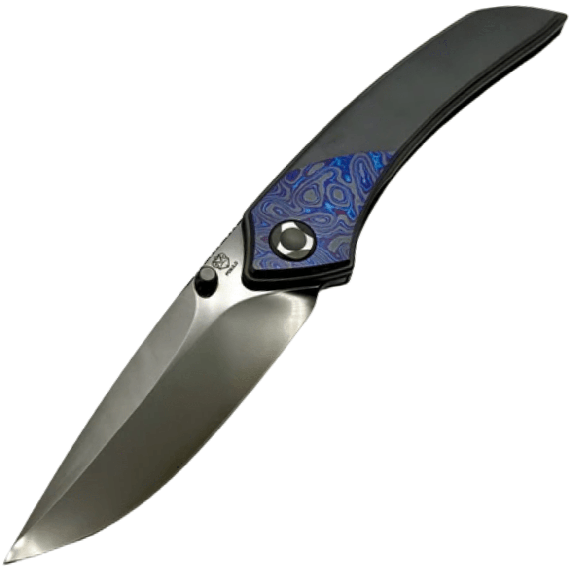 Die Spear Point Klinge mit glatter Schneide besteht aus der leistungsstarken Böhler M398 Stahl. Die Pearlscent Stonewash Oberfläche bietet eine feine, glänzende Textur, die Abnutzungsspuren kaschiert und einen eleganten Look verleiht. Die DLC Mirror Stonewash Oberfläche sorgt für ein hochglänzendes Finish und erhöhte Abriebfestigkeit.